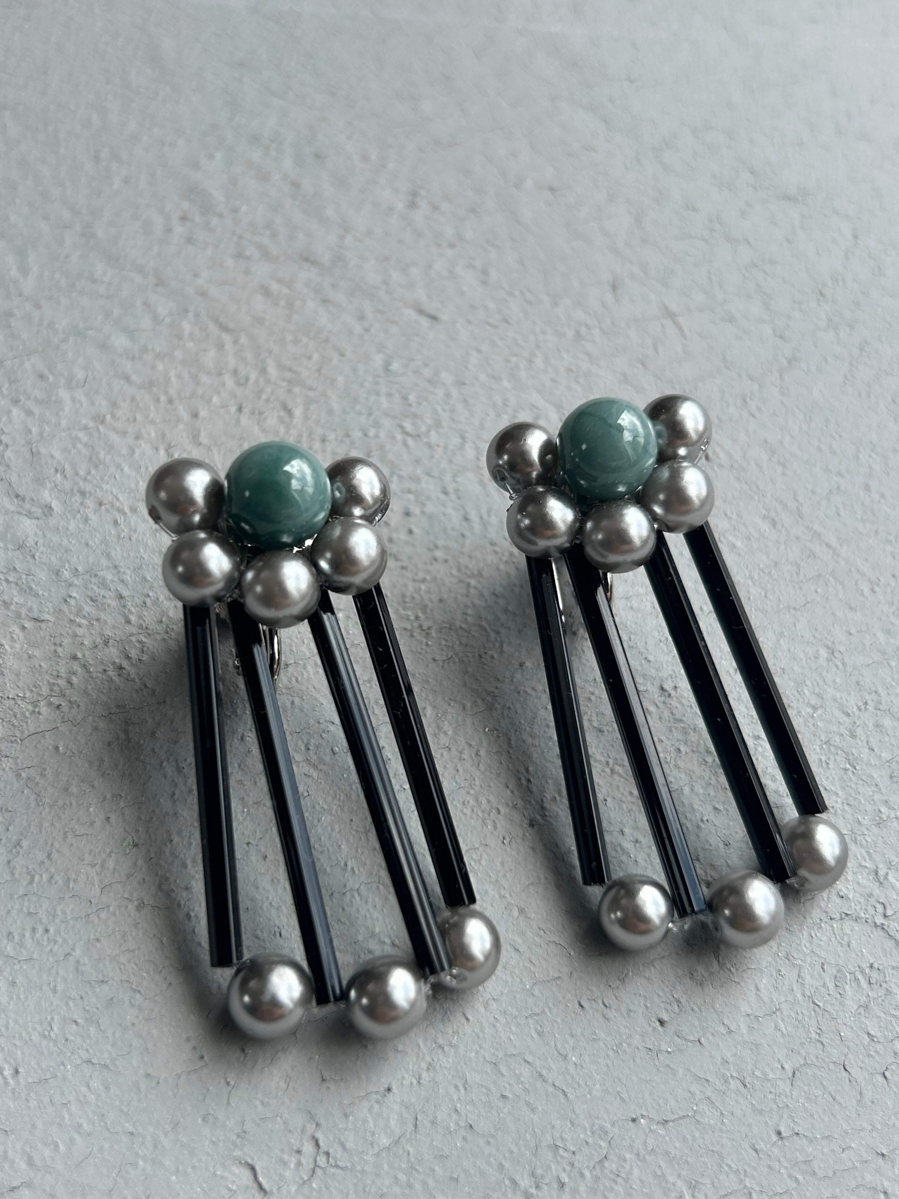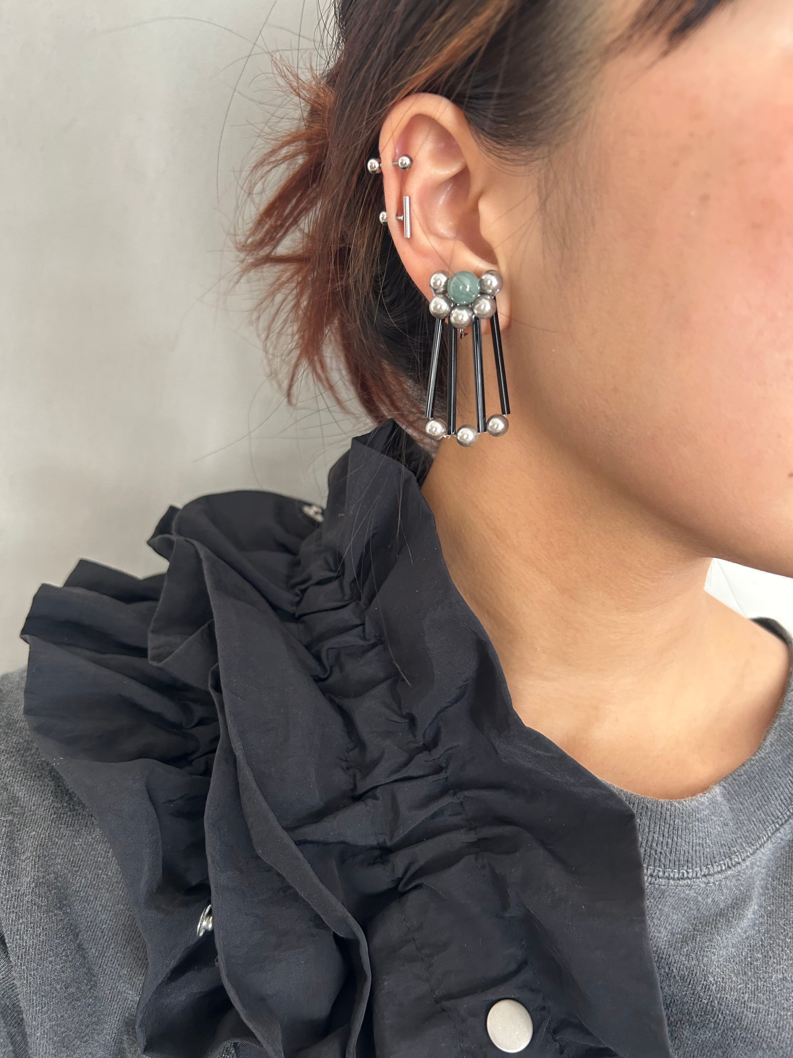 中心に、天然石「青翡翠」を使用した特別なアクセサリーです。◎ 独自の美しさを持つ青翡翠を使用しており、他に類を見ないデザインが特徴です。この天然石は、その深い青色が美しく、普段使いから特別な日まで幅広くお楽しみいただけます。