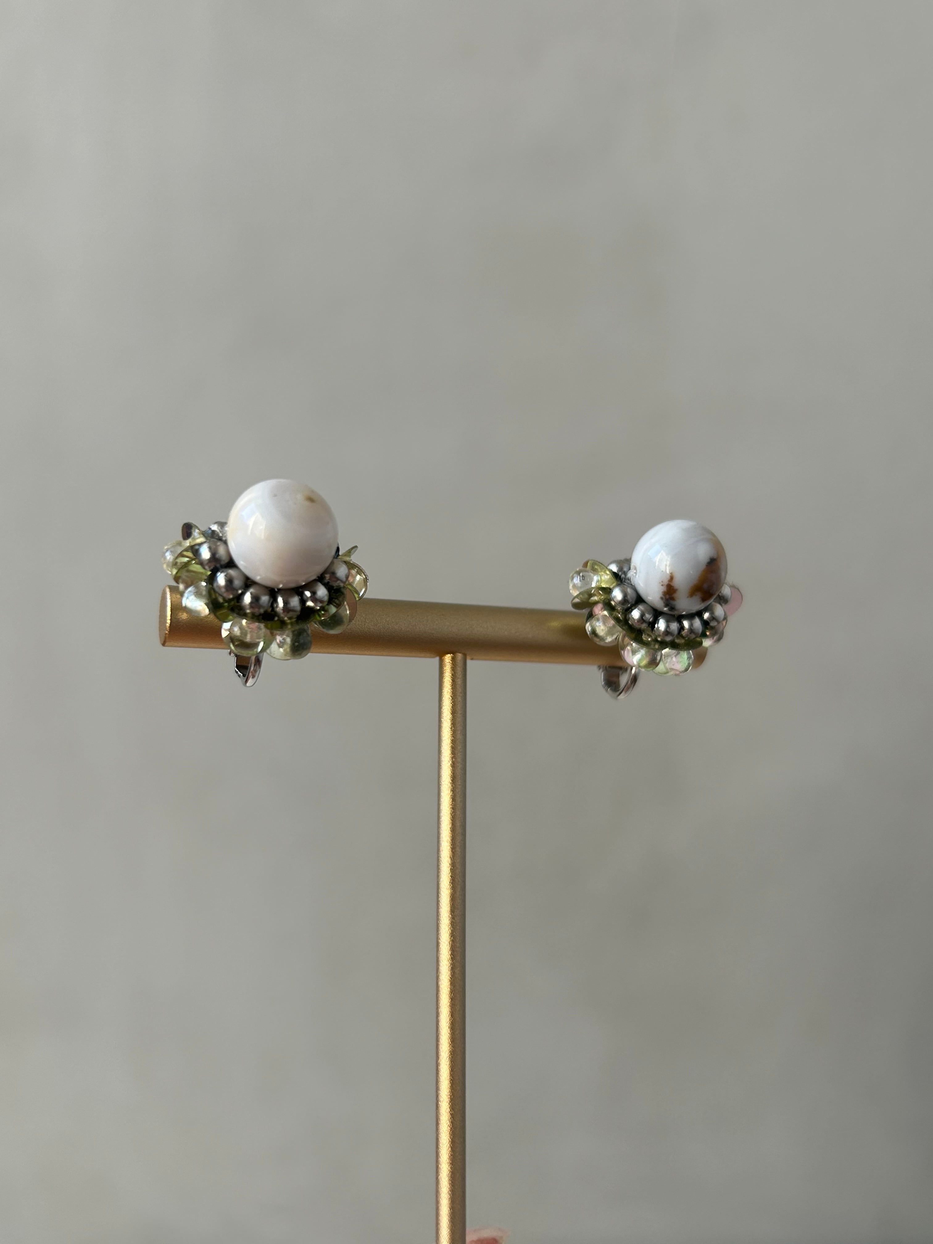 • 【天然石】ホワイトオニキス/ピアス.イヤリング