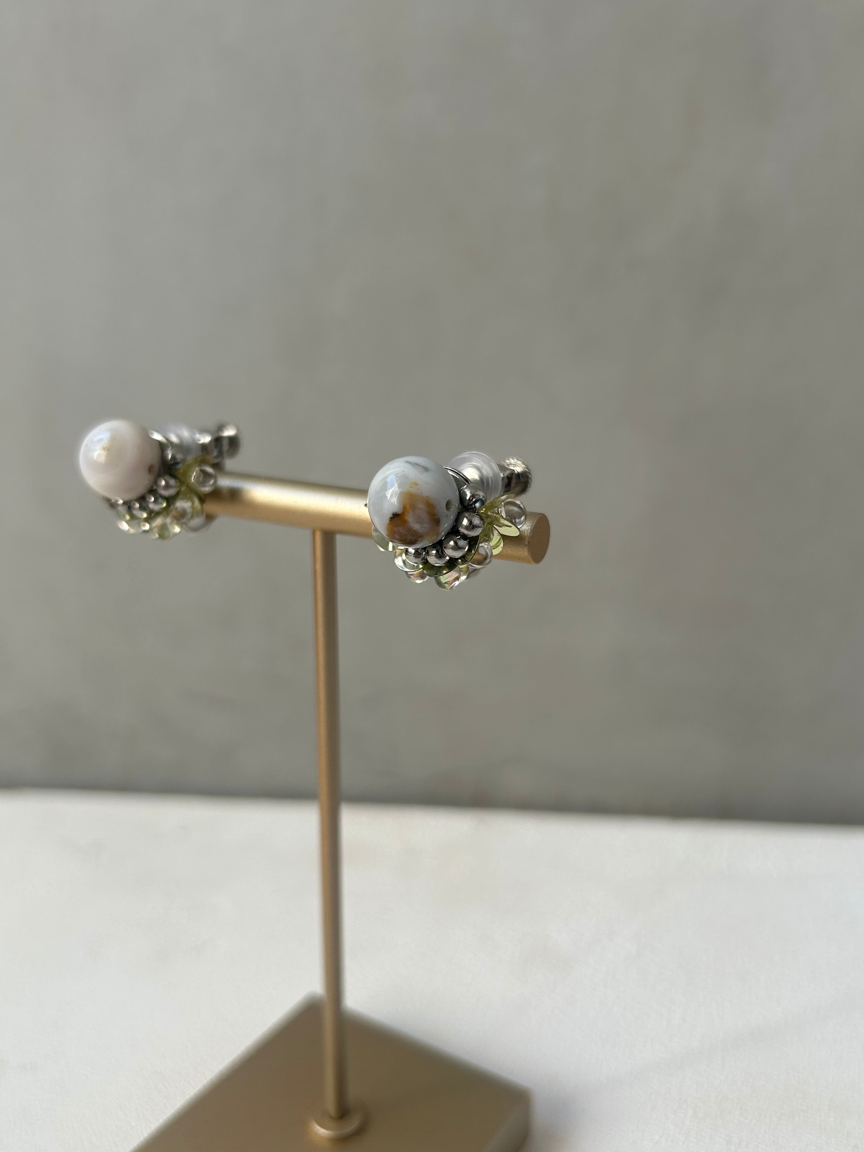 自然の美しさを凝縮したオーシャンジャスパーとキラキラと輝くスパンコールを合わせて、存在感のあるイヤリングに仕上げています。