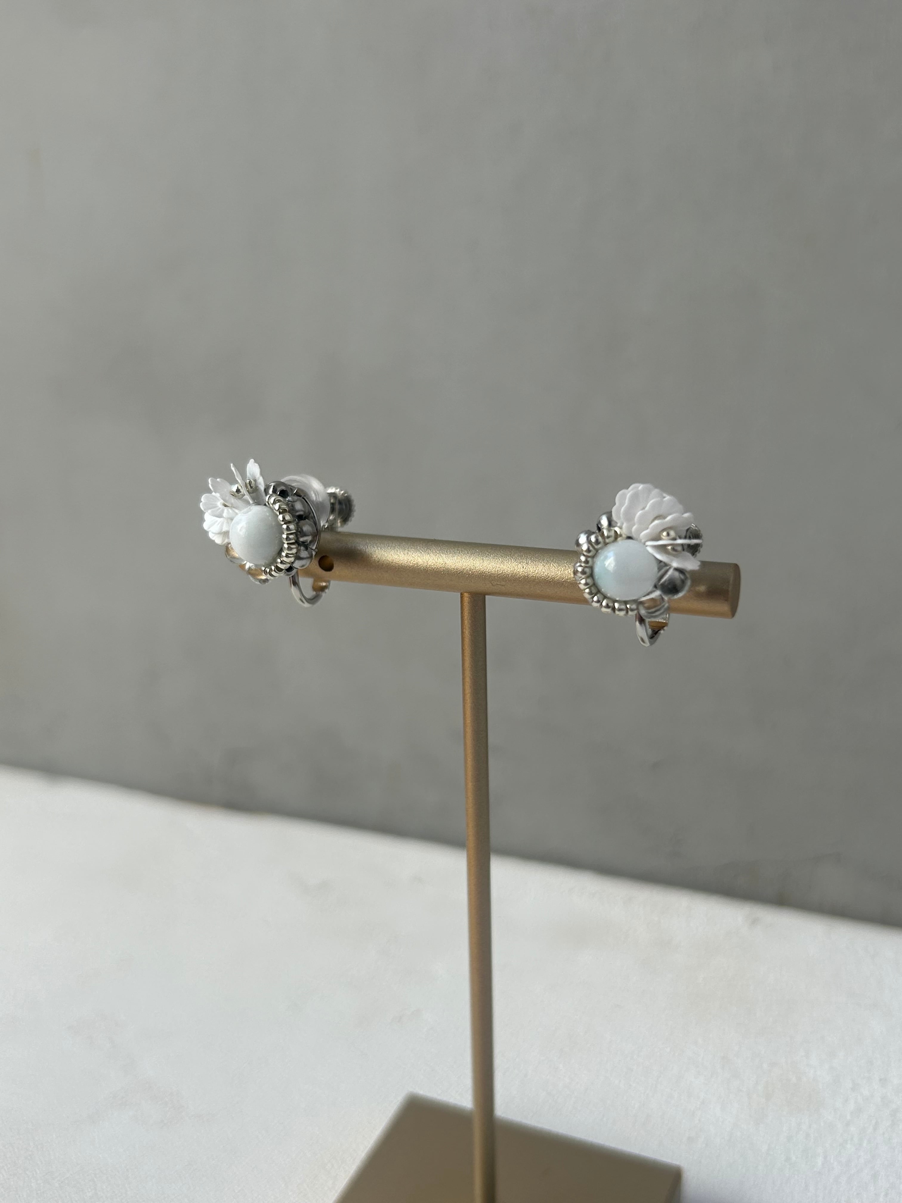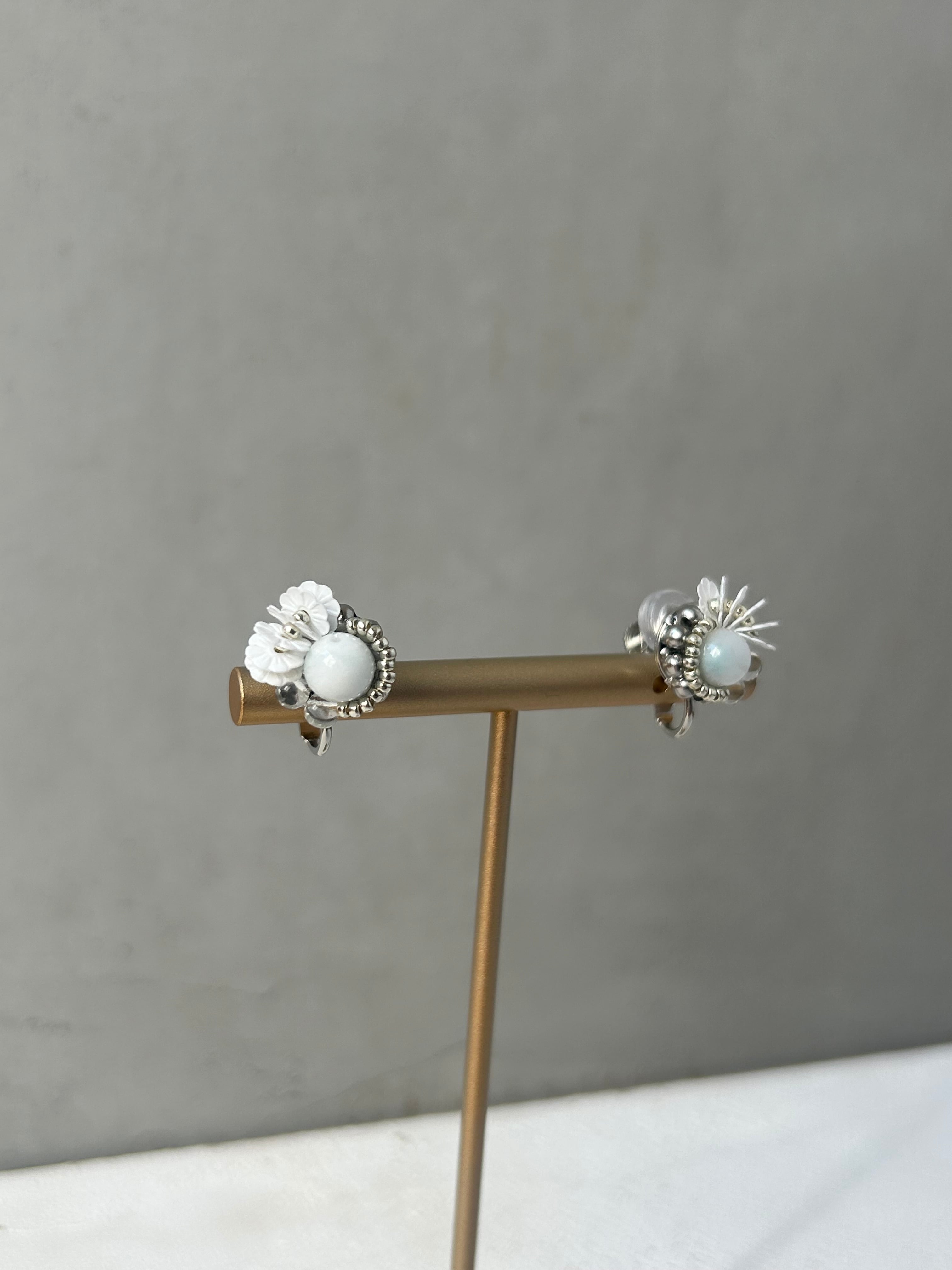 ホワイトラリマーを使用した小ぶりのアクセサリーです。優しいカラーが特徴で、どんなコーディネートにも自然に調和し、さりげなくおしゃれを楽しむことができるアイテムです◎