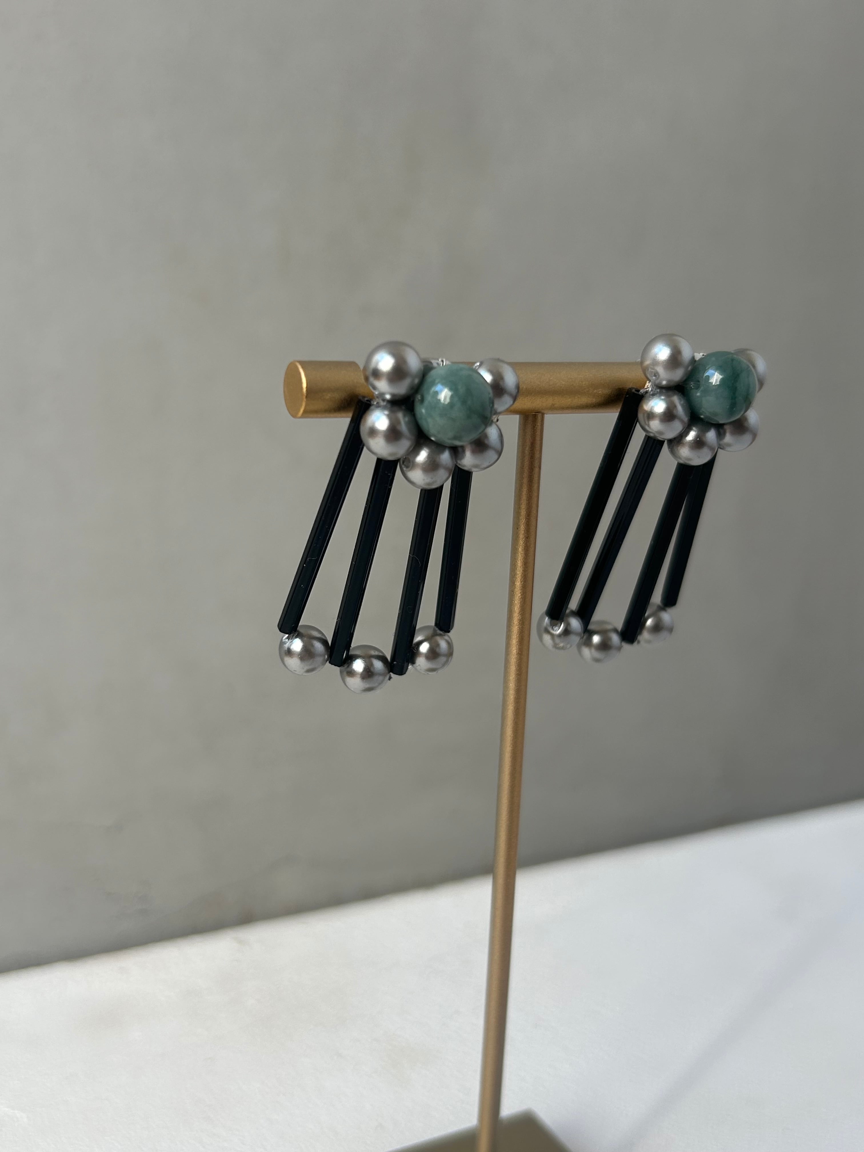 青翡翠を中心に、モダンな配色で仕上げたアクセサリー。