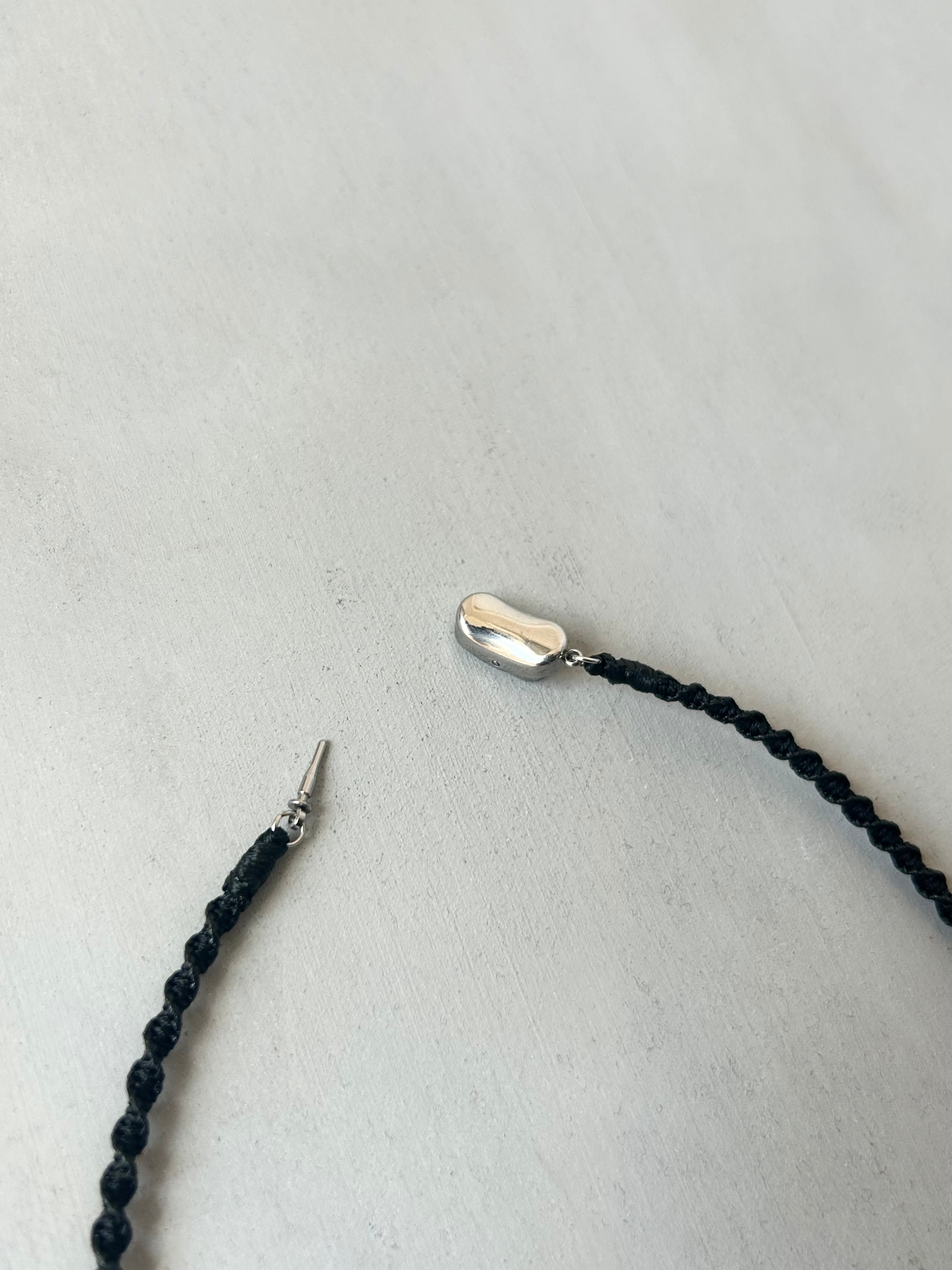 丁寧に編み上げたマクラメコードに、シンプルなステンレスのハートを合わせたネックレス。